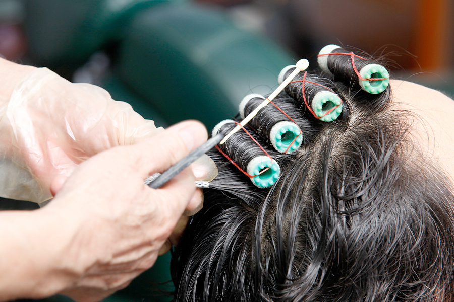 専用車の車内では、一般の美容室と同様の設備を使用して、プロフェッショナルな施術を行います。